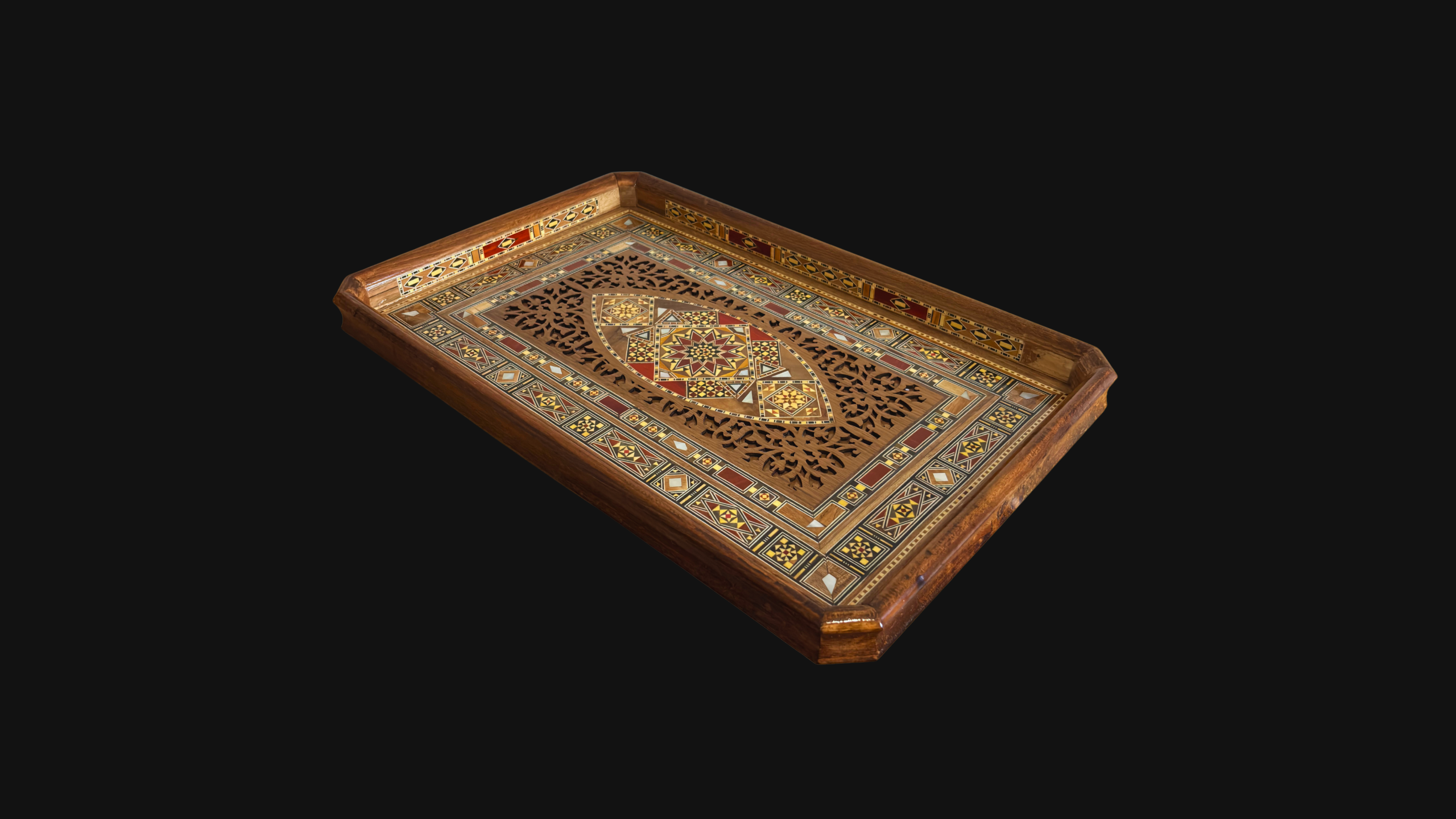 Damascene Mosaic Wooden Tray – Mother of Pearl Inlay & Natural Wood Elegance