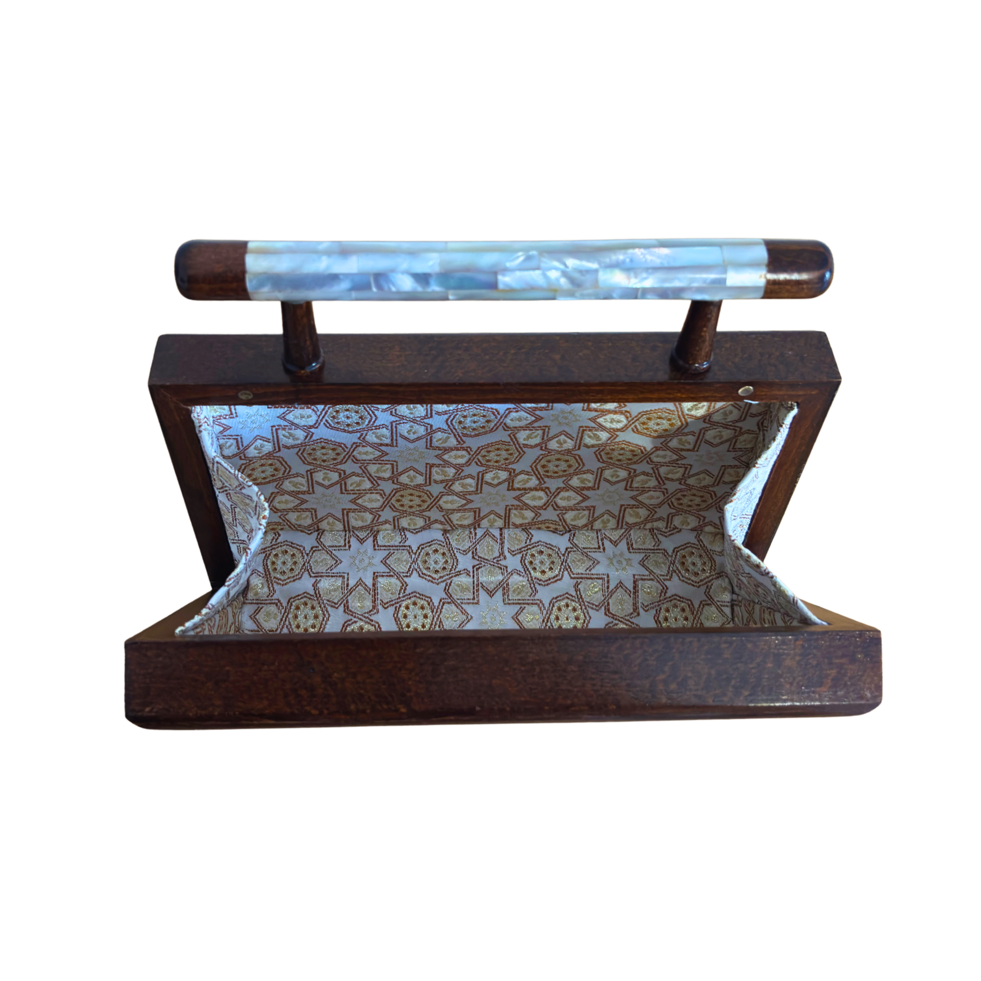 bolso damasquino, nácar, madera de nogal, arte sirio, clutch oriental, brocado, Damascus Box