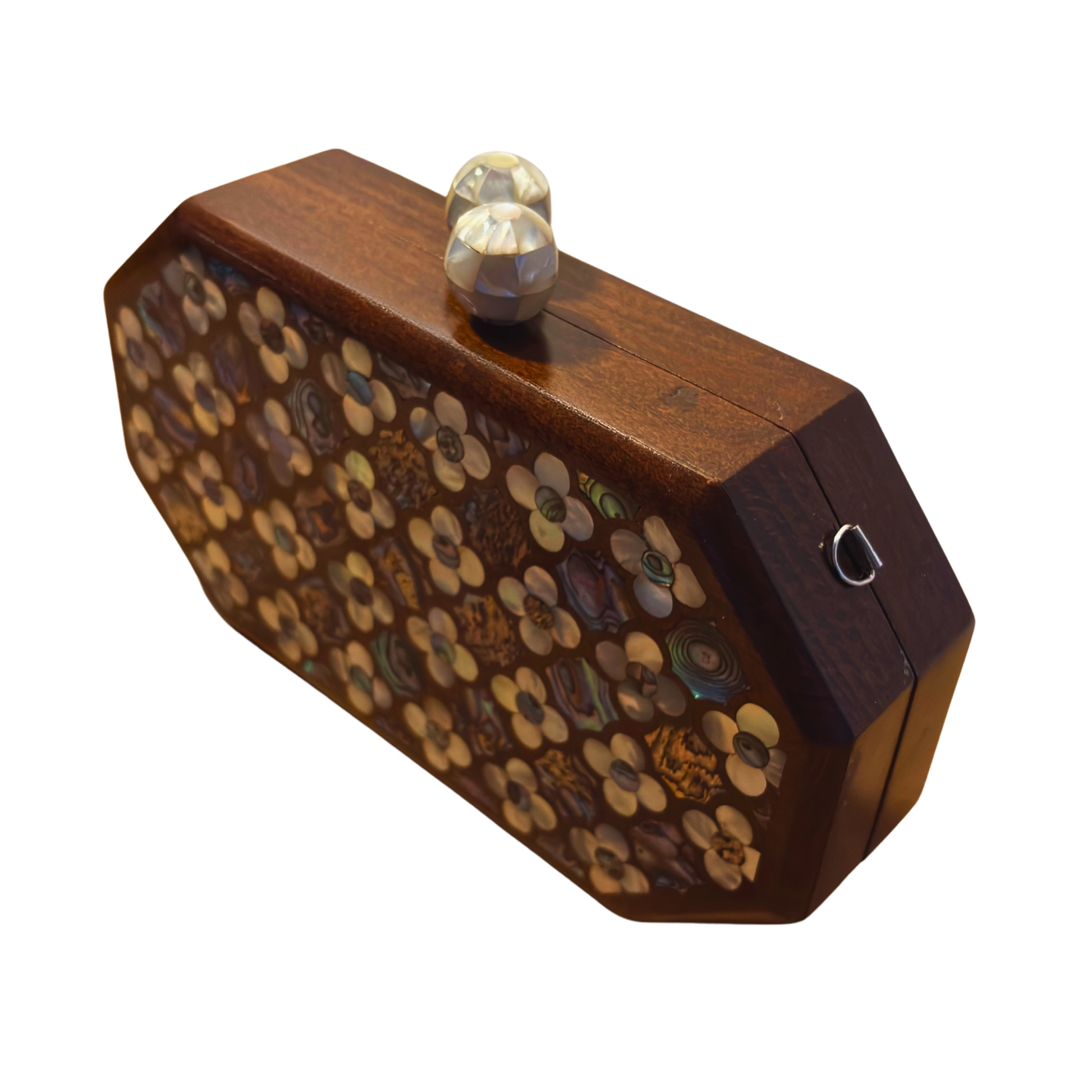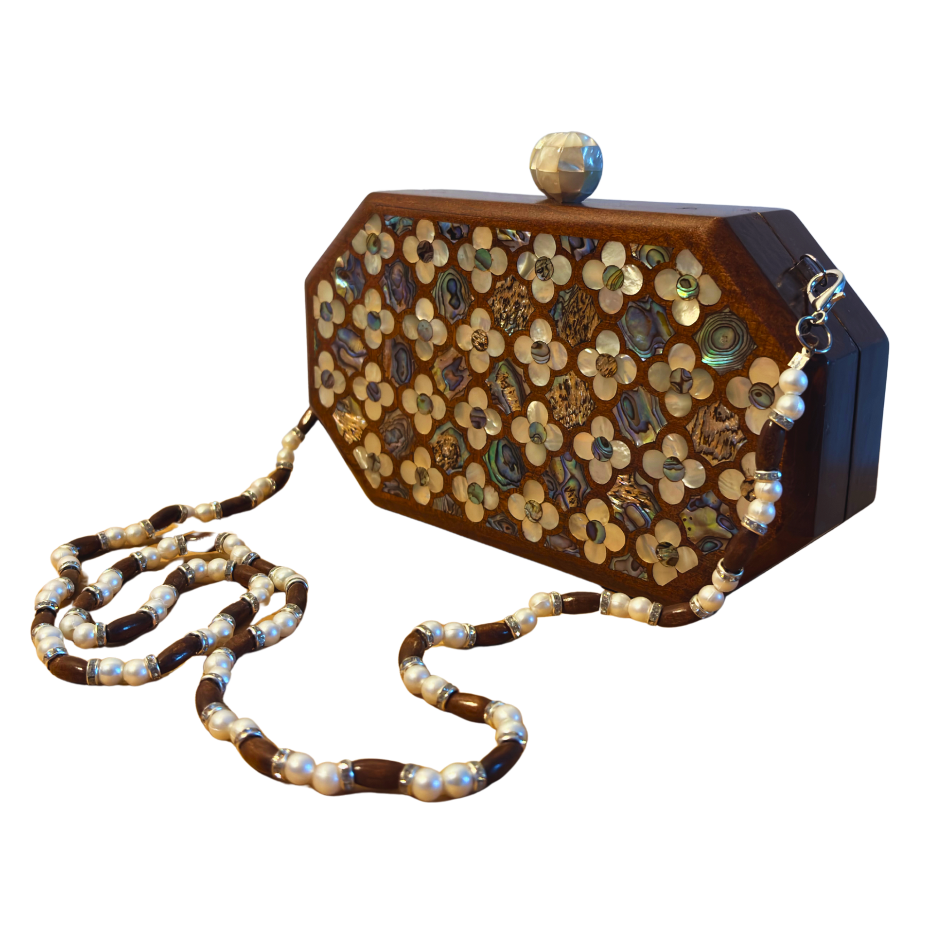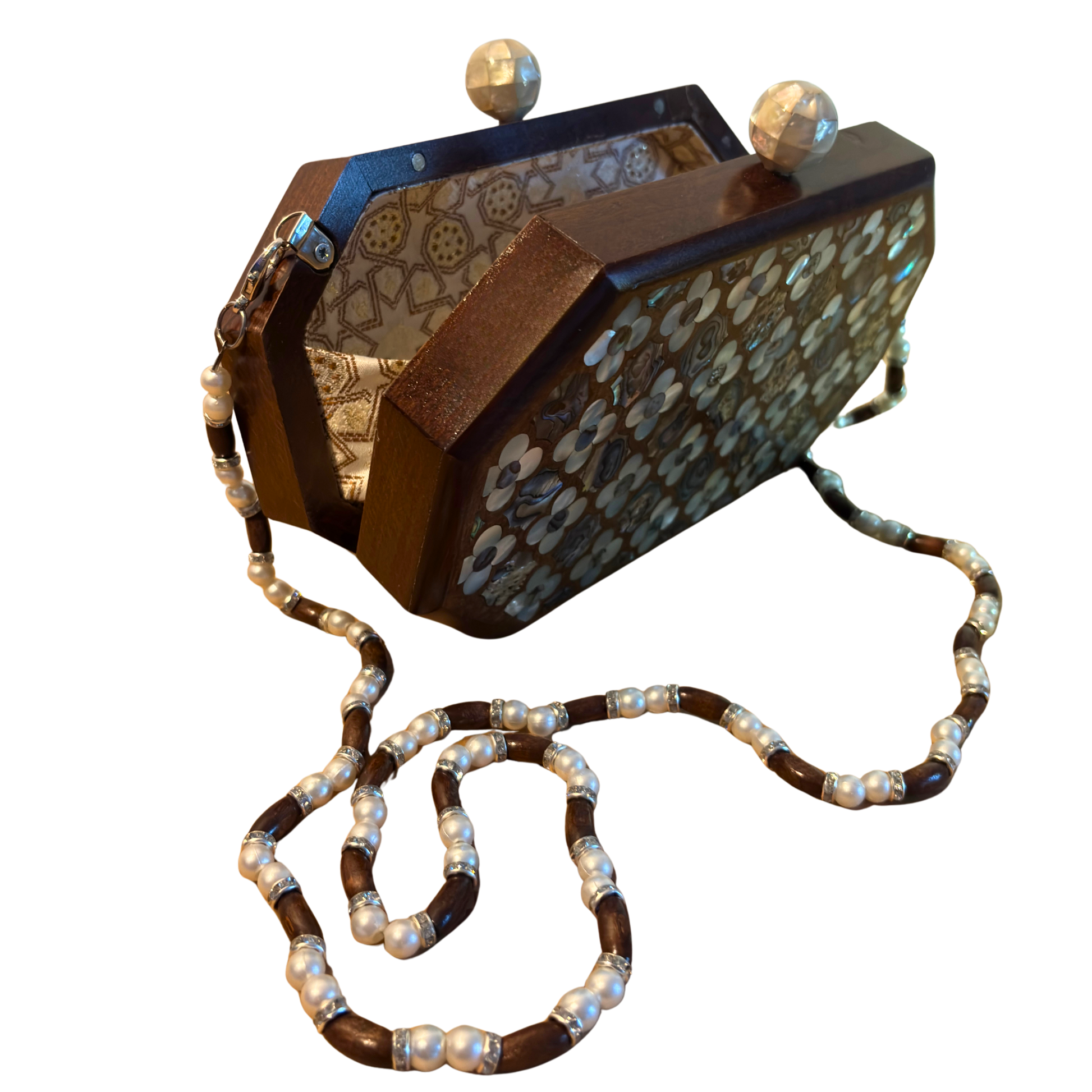 Jouri – Clutch Damascena di Lusso con Madreperla Floreale & Catena di Perle