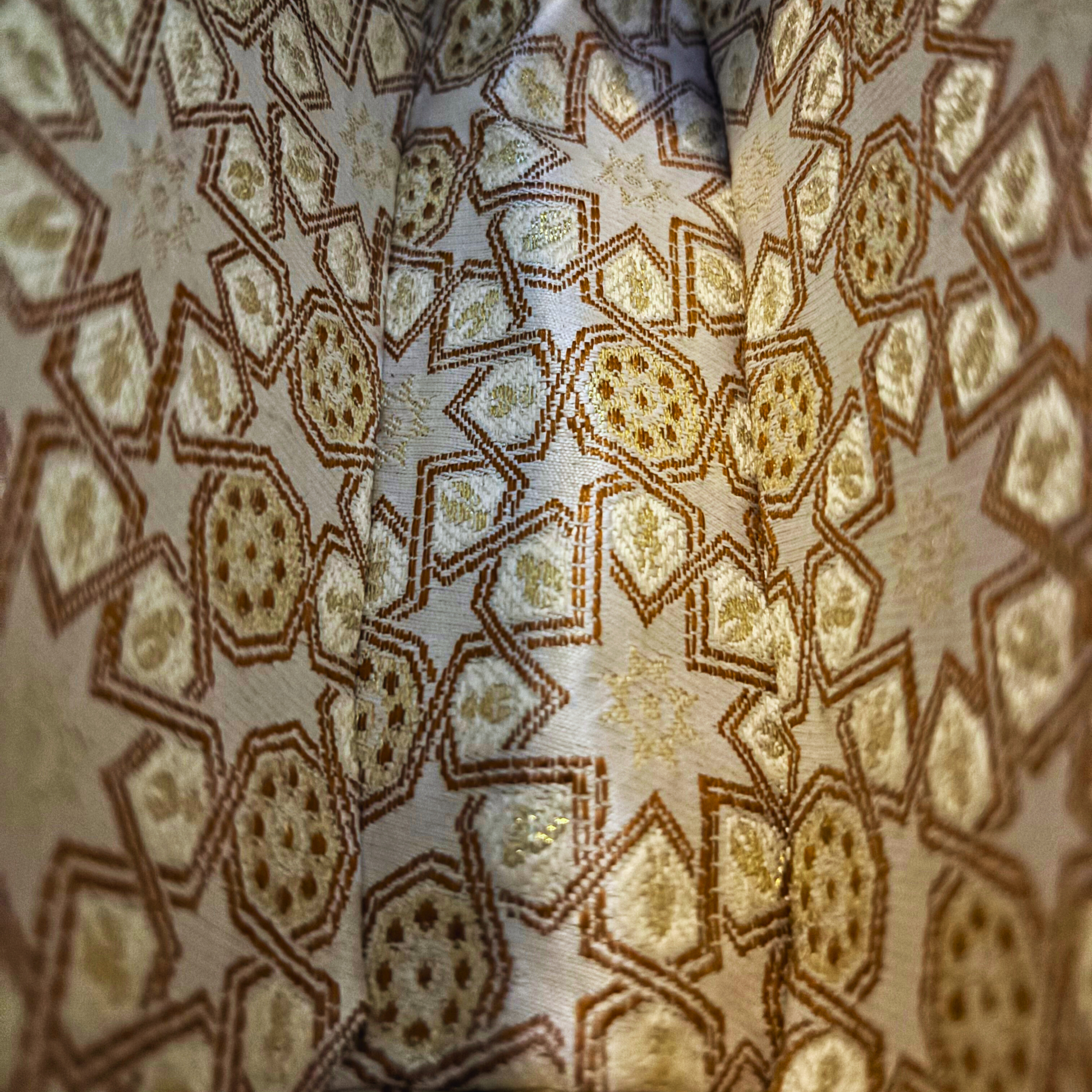 All’interno, il broccato damasceno aggiunge un tocco regale e tradizionale.