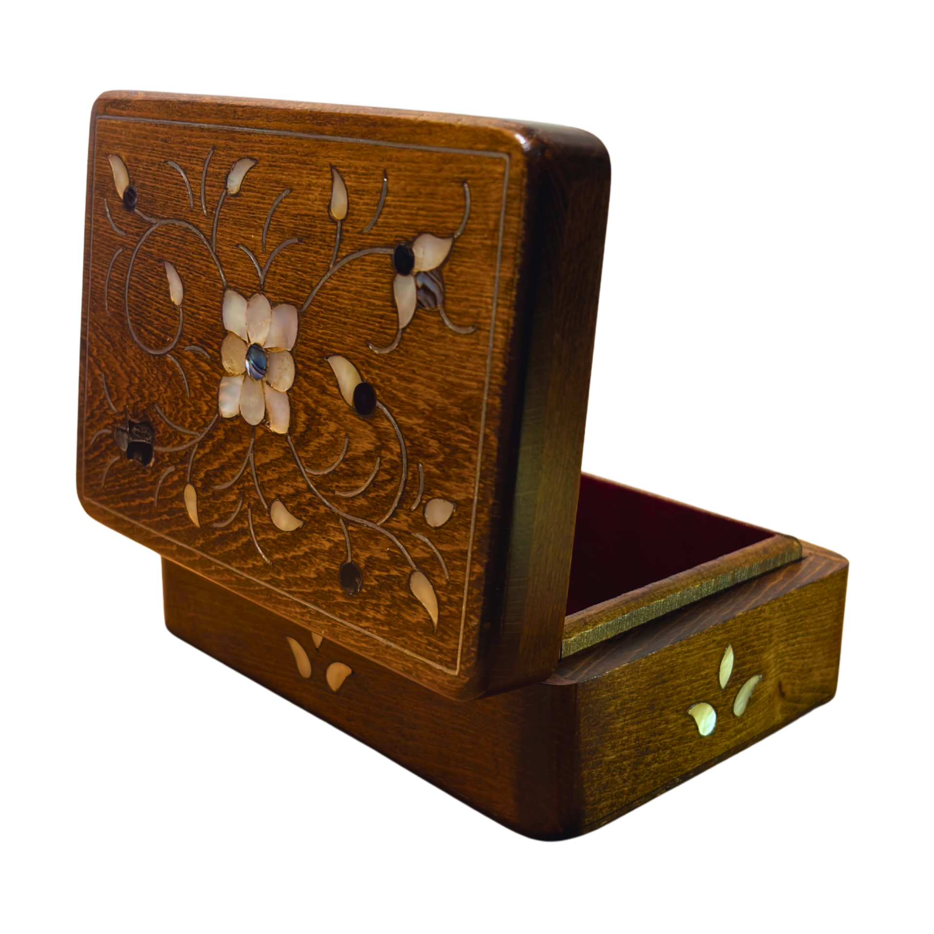 Materialien: Buche, Perlmutt, weinroter Samt